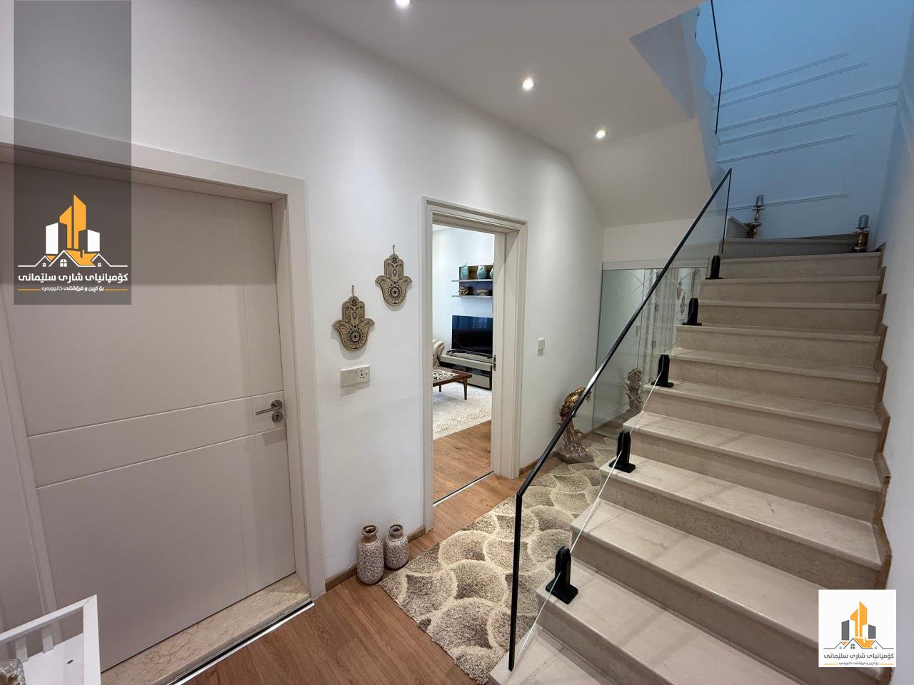 خانوو بۆ فرۆشتن لە سلیمانی لە پرۆژەی بەرزاییەکانی سلیمانی ڕوبەری (153م) ،ڕووی ئەزمەر ،خانوەکە دوو نهۆمە پێکدێت لە: هۆڵ و میوان پێکەوە، چوار ژوری نوستن یەکێکیان ماستەرە، یەک چێشتخانە، یاریدەدەری چێشتخانە، سێ مشتەمەلات،کۆڵانی (18م) باخی خۆی هەیە، بالکۆن ،مەخزەن، گەراج، ئەم خانوە باشترین کەرەستەی بیناسازی تێدا بەکار هێنراوە سەقفی مەغریبیە ئەرزی لامیناتە،بونی سپلێت لە ژورەکان،تەوزیعاتی فێنکەرەوەی بۆ کراوە،تەوزیعاتی شۆفاش ،ڕوکاری دەرەوەی سمدبۆرد ،بۆ وەرگرتنی نرخ وبینینی ئەم موڵکەو زانیاری زیاتر هیوادارین دەرفەت هەبێت سەردانی کۆمپانیای شاری سلیمانی بکەن شەقامی شەست مەتری بەرامبەر شوقەکانی گاردن ستی یان پەیوەندی بکە بە ستافەکەمان 07705008080