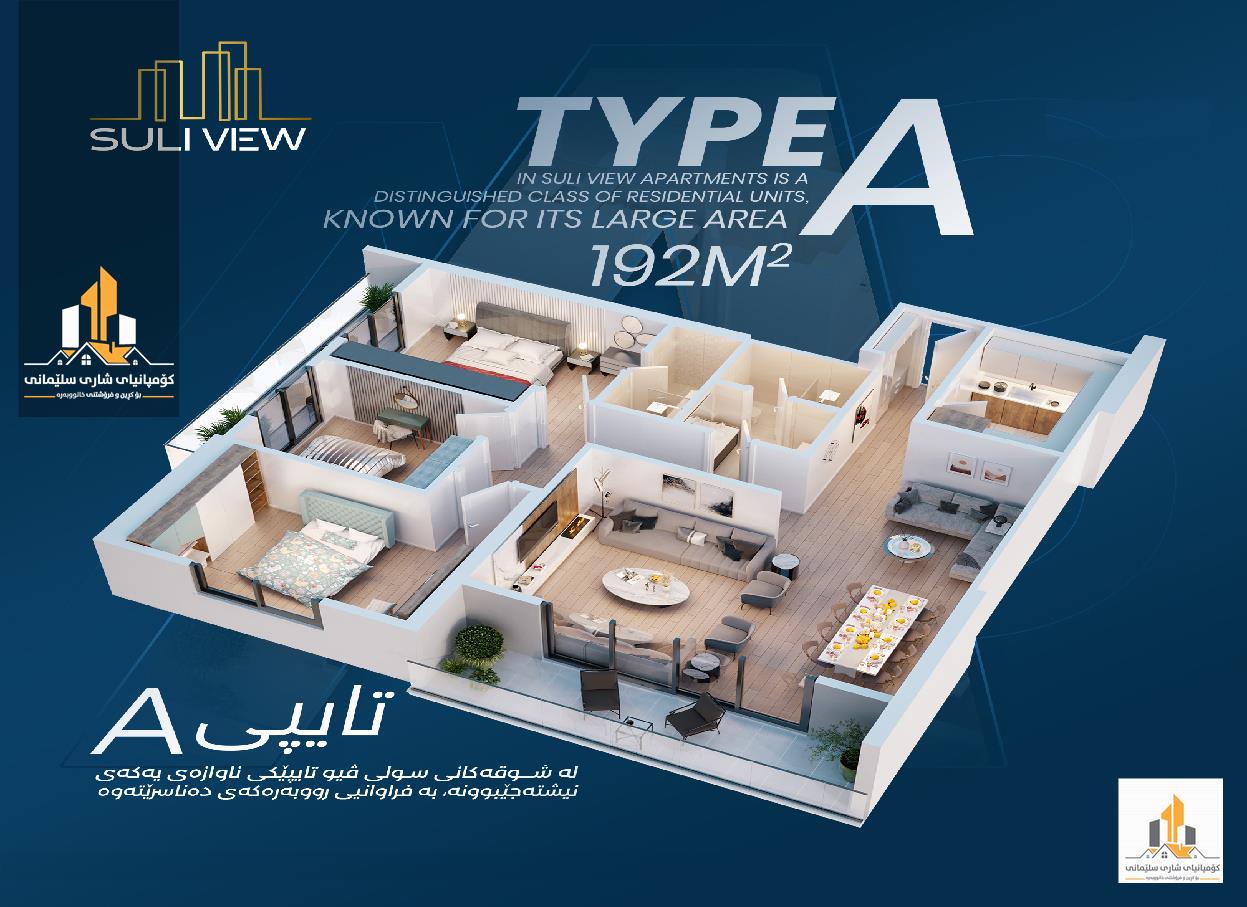 شووقە بۆ فرۆشتن بە شێوازی نەقد لە پڕۆژەی سولی ڤیو شووقەکە (192) مەترە ڕوکنە ،ڕووی ئەزمەڕ و ڕۆژئاوا ، لە تایپی (A1) بەتەواوی خزمەتگوزارییەکانەوە لە ئاو ، کارەبا ، غاز ، سکیۆرتی و کامێرای بەردەوام. شووقەکە پێکھاتووە لە : مدخەل ، ڕاڕەو ، ژووری میوان ، ژووری نانخوارد ، چێشتخانە ، سێ ژووری نوستن کە یەکێکیان ماستەرە ، مشتەمەلات ، گەنجینە ، باڵکۆن. ڕوونکردنەوەی زیاتر: شووقەکە لە کارکردندایە باشترین کەرەستەی بیناسازی تیادا بەکارهێنراوە ( سەقفی مەغریبی ، ئەرزی لامینات ، بوونی سپلێت لە تەواوی ژوورەکاندا ، سێتی کەوانتەر ، سێتی گەرماو ، گەراجی داخراو ). بۆ وەرگرتنی نرخ و بینینی ئەم موڵکە سەردانی ئۆفیسی( کۆمپانیای شاری سلێمانی ) بکەن ناونیشان شەقامی شەست مەتری بەرامبەر گاردن سیتی.