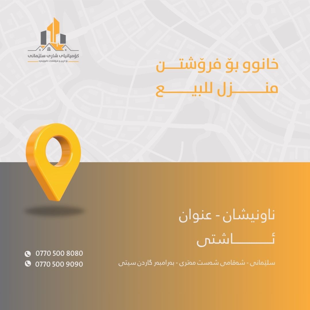 خانوو بۆ فرۆشتن لە گەڕەکی ئاشتی بە ڕووبەری ١٥٠ مەتر ڕووی ئەزمەڕ ، کۆڵانی ١٢ مەتری ، پێک دێت لە دوو نهۆم #نھۆمی_یەکەم پێکدێت لە : میوان،هۆڵ،نوستن، مشتملات . #نھۆمی_دووەم پێکدێت لە : سێ نوستن ، مشتەمەلات . ڕوونکردنەوەی زیاتر : شۆفاش و دەکتە هۆڵو میوان بە یەکەوەیە. بۆ وەرگرتنی نرخ و بینینی ئەم موڵکە سەردانی ئۆفیسی( کۆمپانیای شاری سلێمانی ) بکەن ناونیشان شەقامی شەست مەتری بەرامبەر گاردن سیتی یان پەیوەندی بکەن بەستافەکانمان 07705008080-07705009090